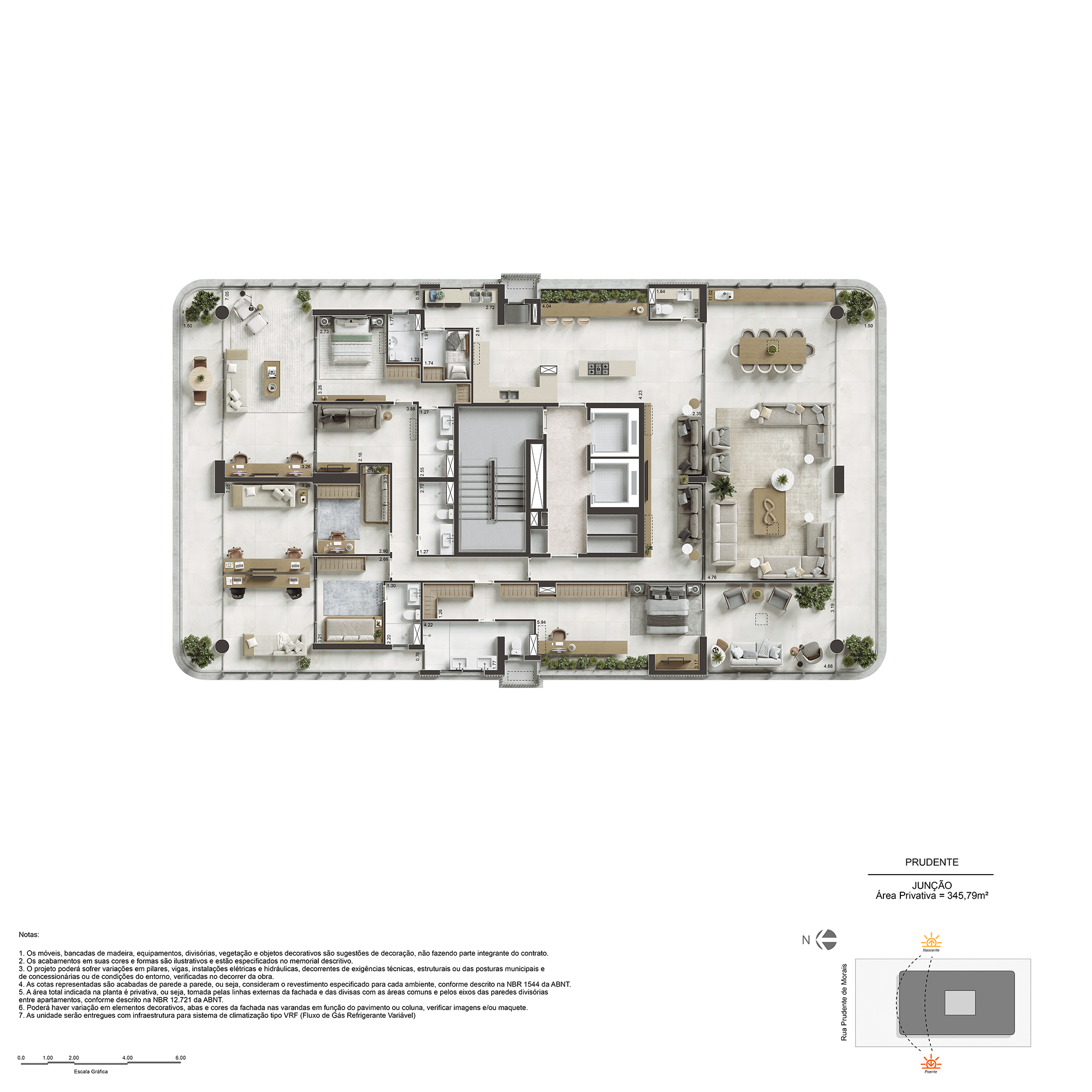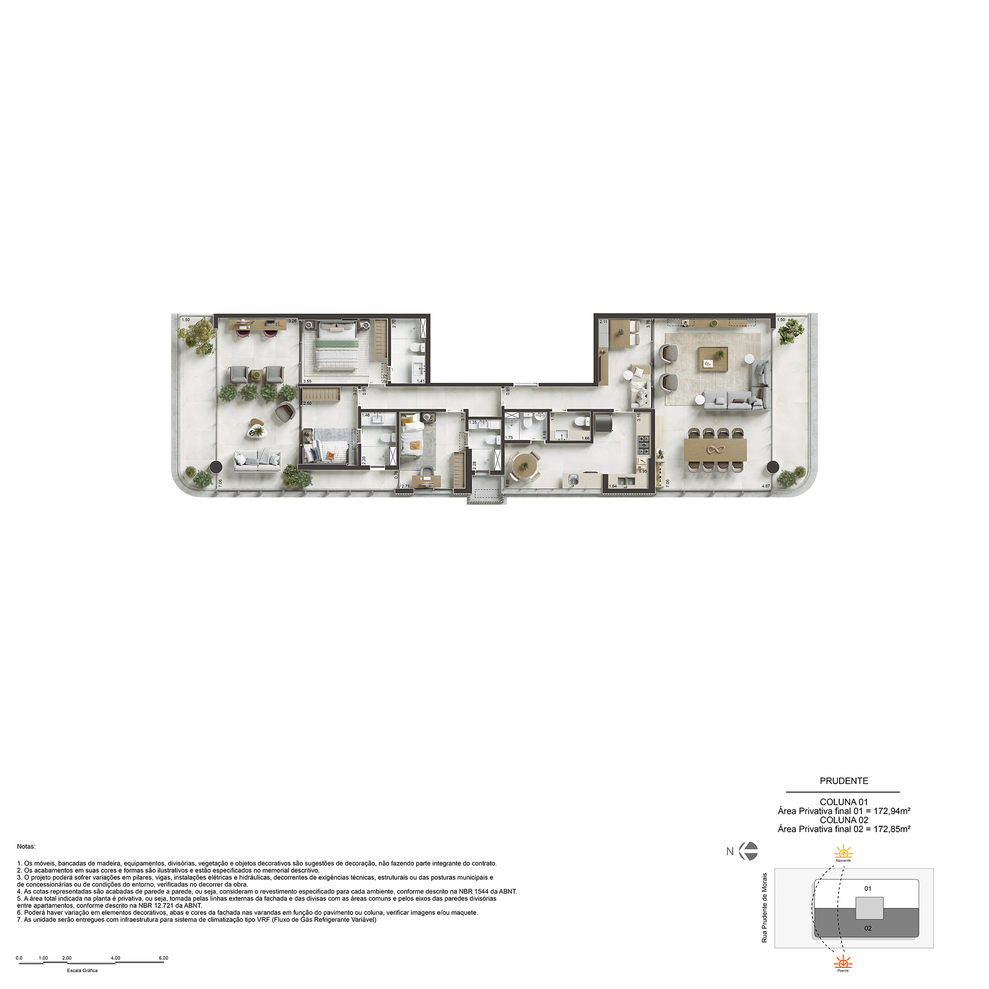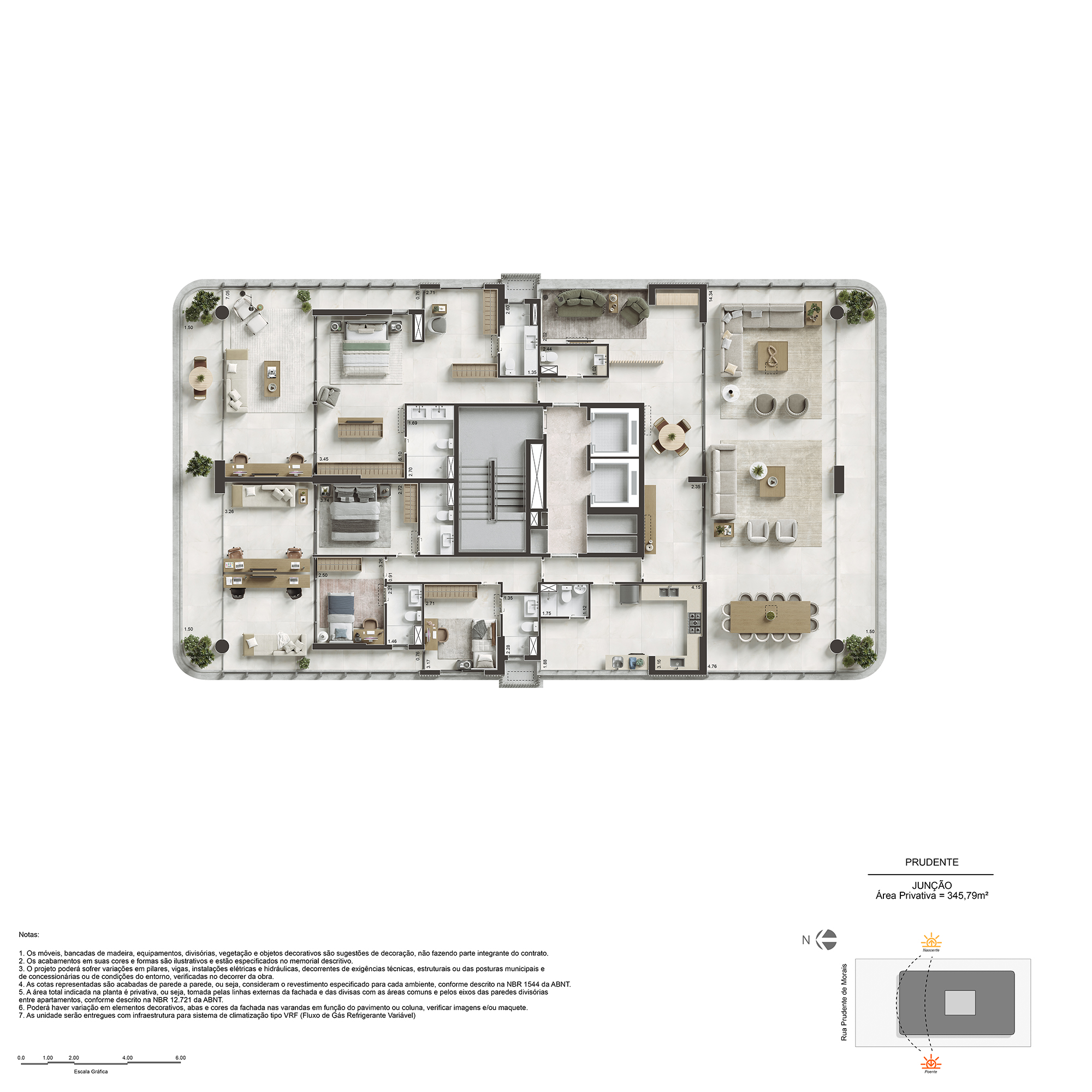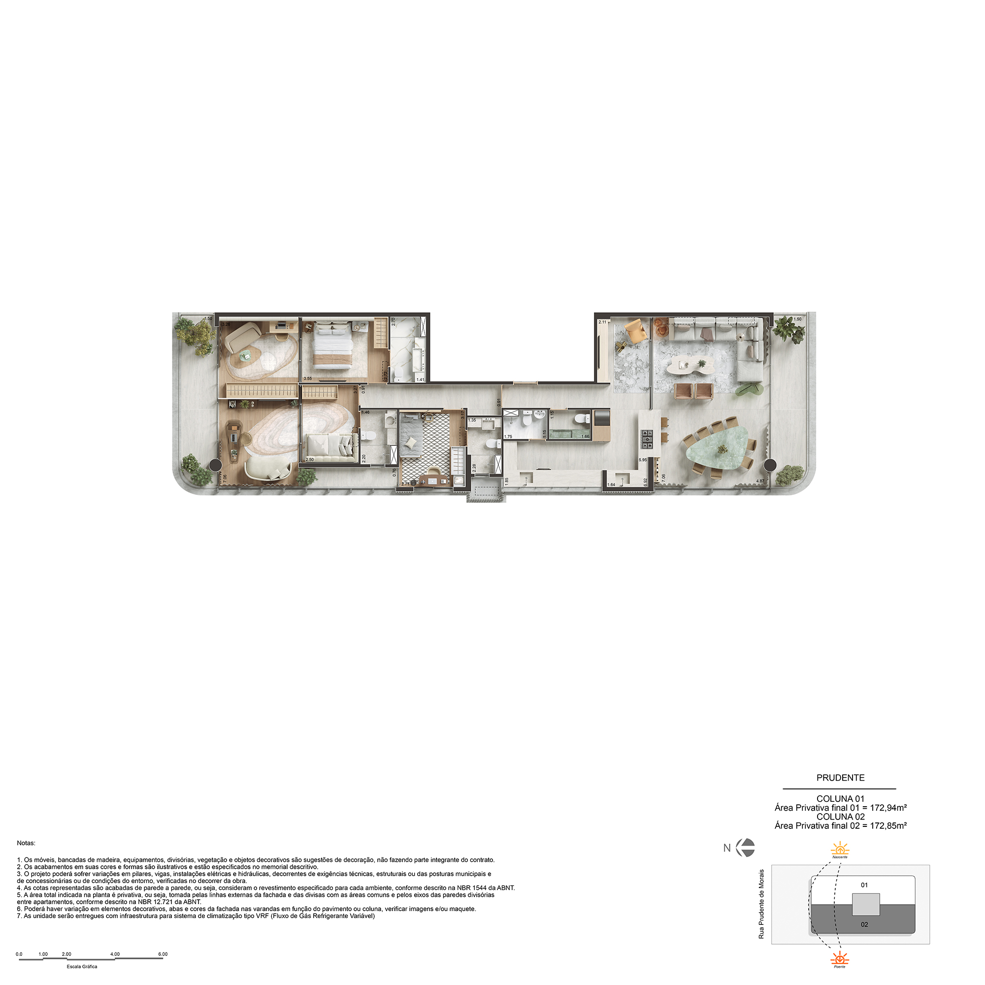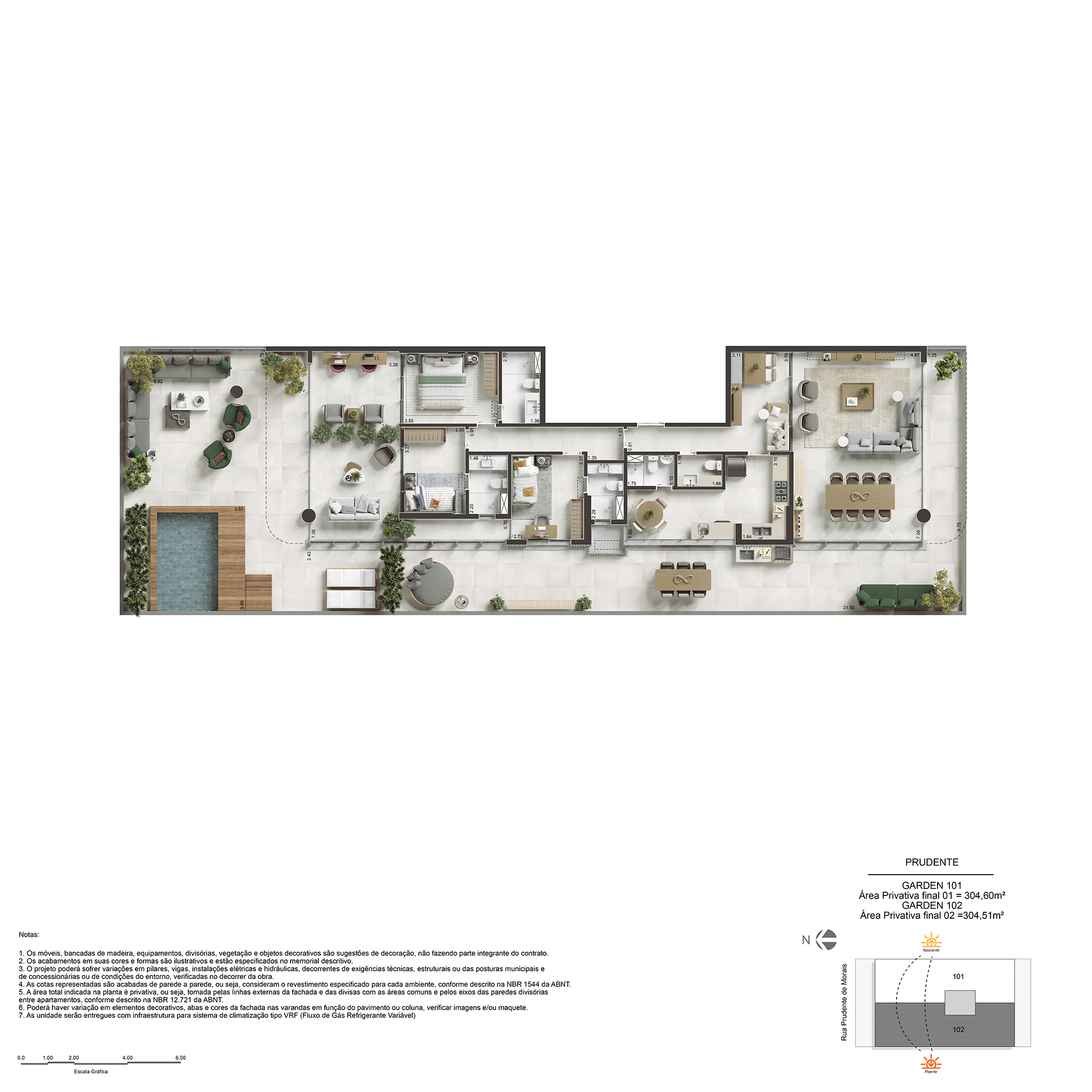 3 suítes com lavabo e WC de serviço de 173m²